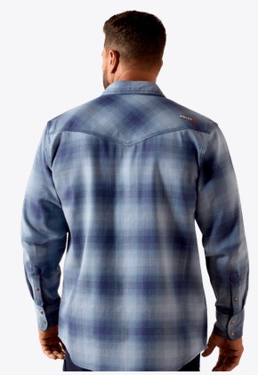 10071084-Ariat FR Ryan Retro Fit Snap Front L/S Shirt - Dusty Blue