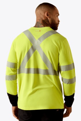 10071736-Ariat FR Hi-Vis Class 3 Dual Hazard Colorblock Pocket L/S Shirt - Hi-Vis Yellow/ Navy