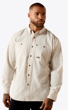 5 oz 98% cotton 2% Spandex Durastretch™ Ripstop Button front Two chest pockets... more